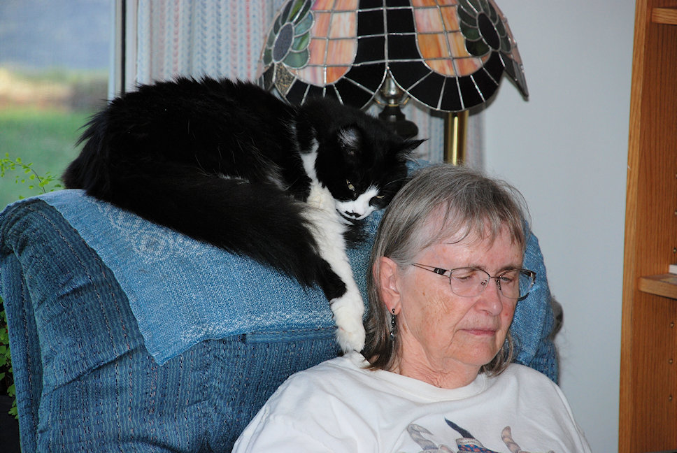 Charlie is a one year old female cat, who came to live with us on December 16th. Our neighbour alerted us to her presence at a local pet food store, put there by a rescue society. She looked so unhappy, but put up her chin to be rubbed and purred. You might say she sucked us in!