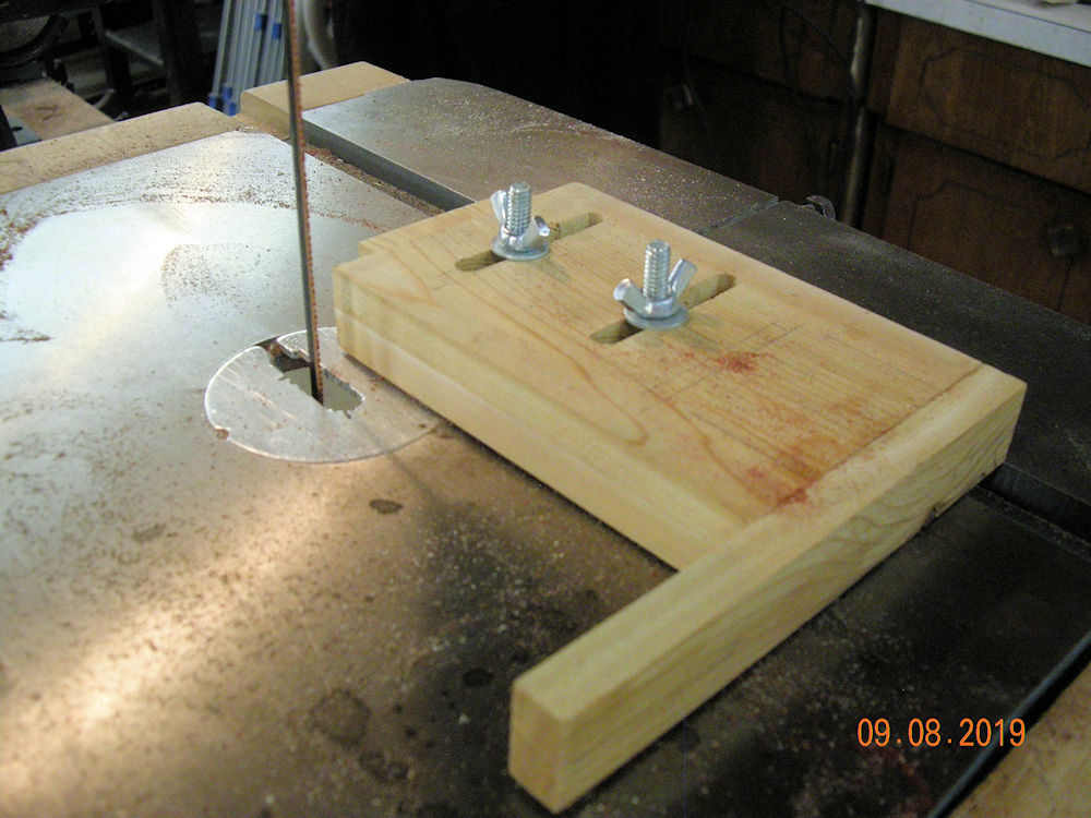 After a making the first samples, it looked like that I was going to need a tool to guide the cutting of the needles from the blank. This lets me cut without (overly) endangering fingers. (Have been there a couple of times with the band saw.)