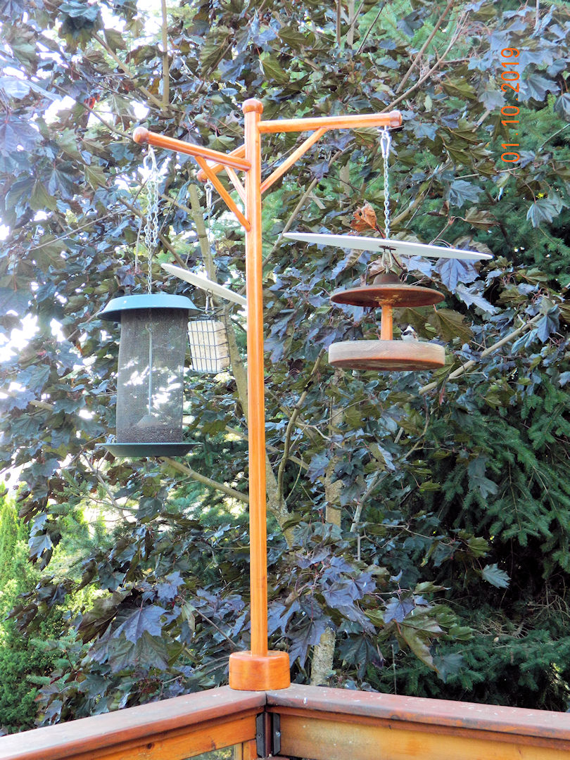 The horizontal arm (right side) has been slowly slumping for the past year and will likely fall off soon. This is it's fourth year in the elements and the seed feeder is much heaver that the others.