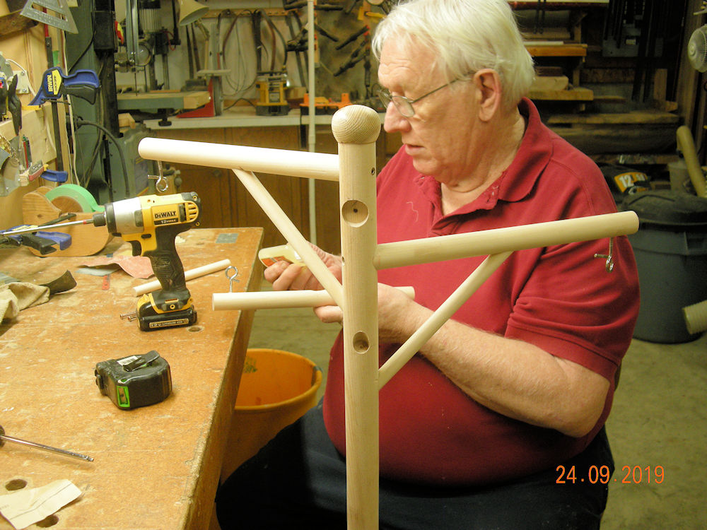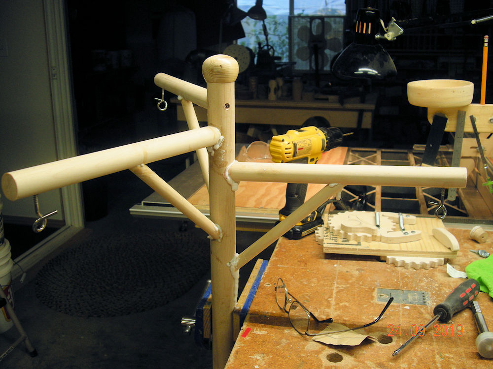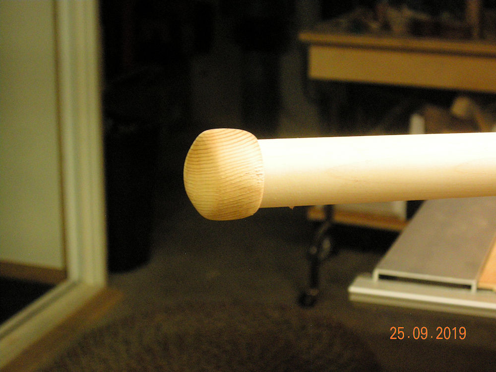 Each of the raw ends of the dowel were capped with cedar turned from scrap wood blocks.