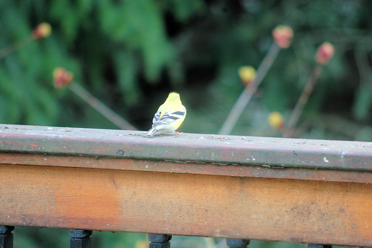 The goldfinch flits around quickly and doesn't bother to pose.