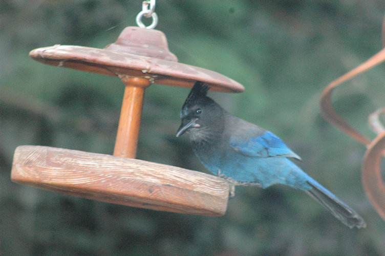 A Steller's Jay came by for a visit and to check out the menu in the bird feeder.