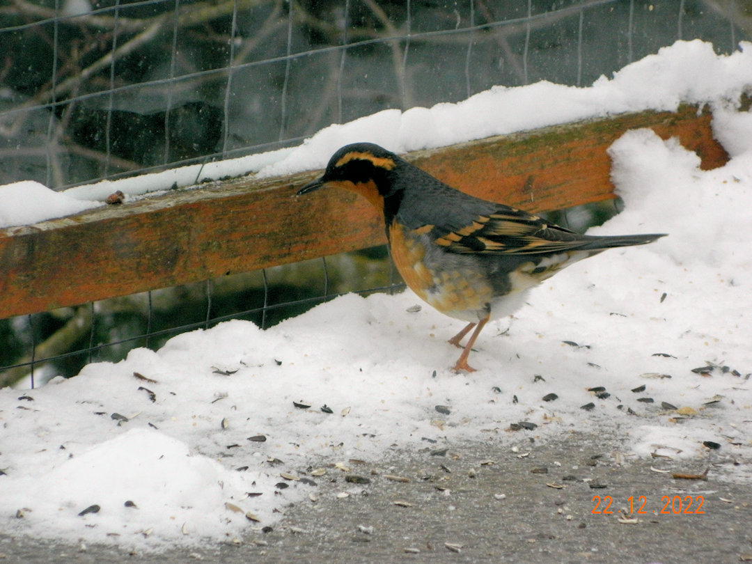 This is a male varied thrush. Only the second time we've seen them here.