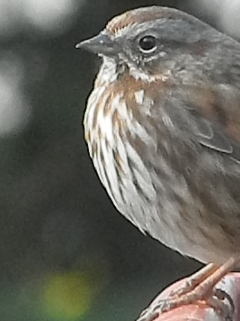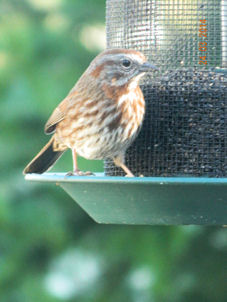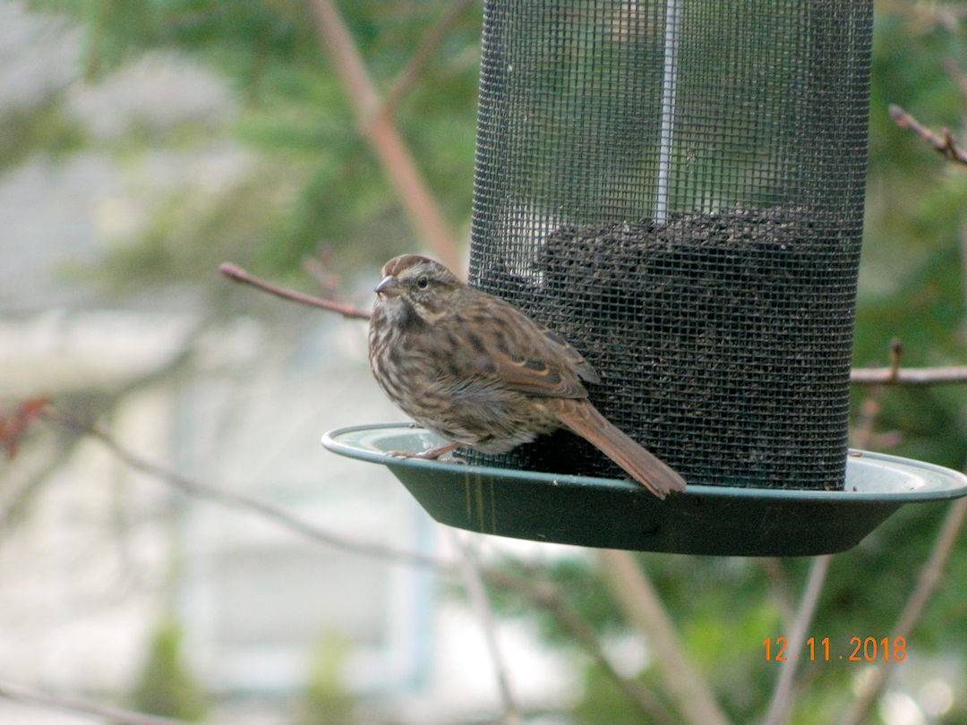 We're not sure who this is - maybe a female house finch or a song sparrow or a fat Pine Siskin??? March 25, 2014
