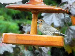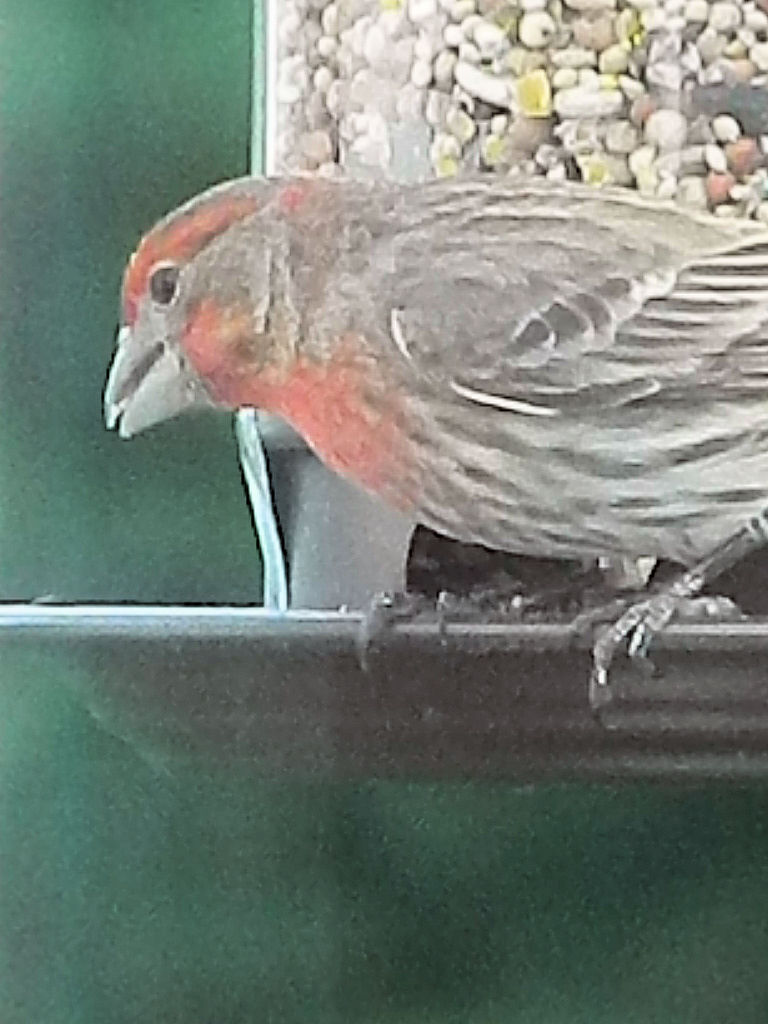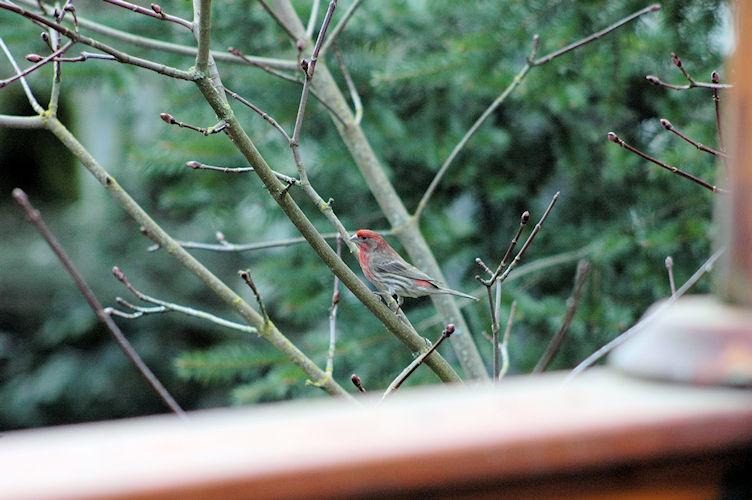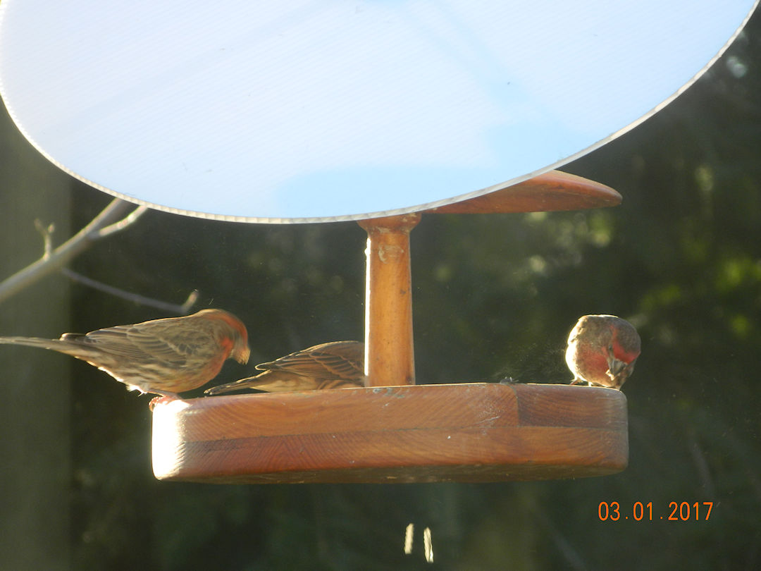 The house finches are back - this male tries to boss the other birds around - with varying success.