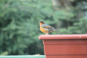 A Varied Thrush that we've only seen once. It took some digging in the bird book to identify this fellow. March 24, 2014
