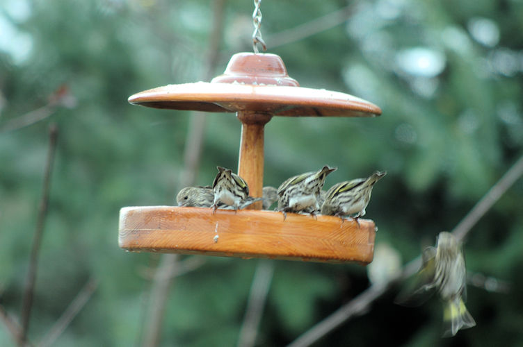 A few of the Pine Siskins lined up at the feeder. They hang around all winter. November 18, 2015