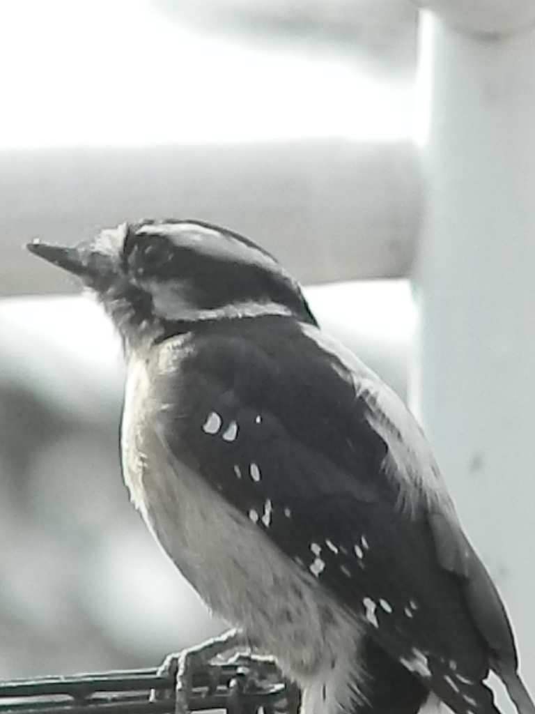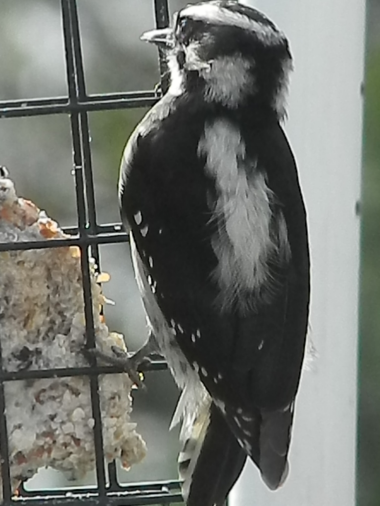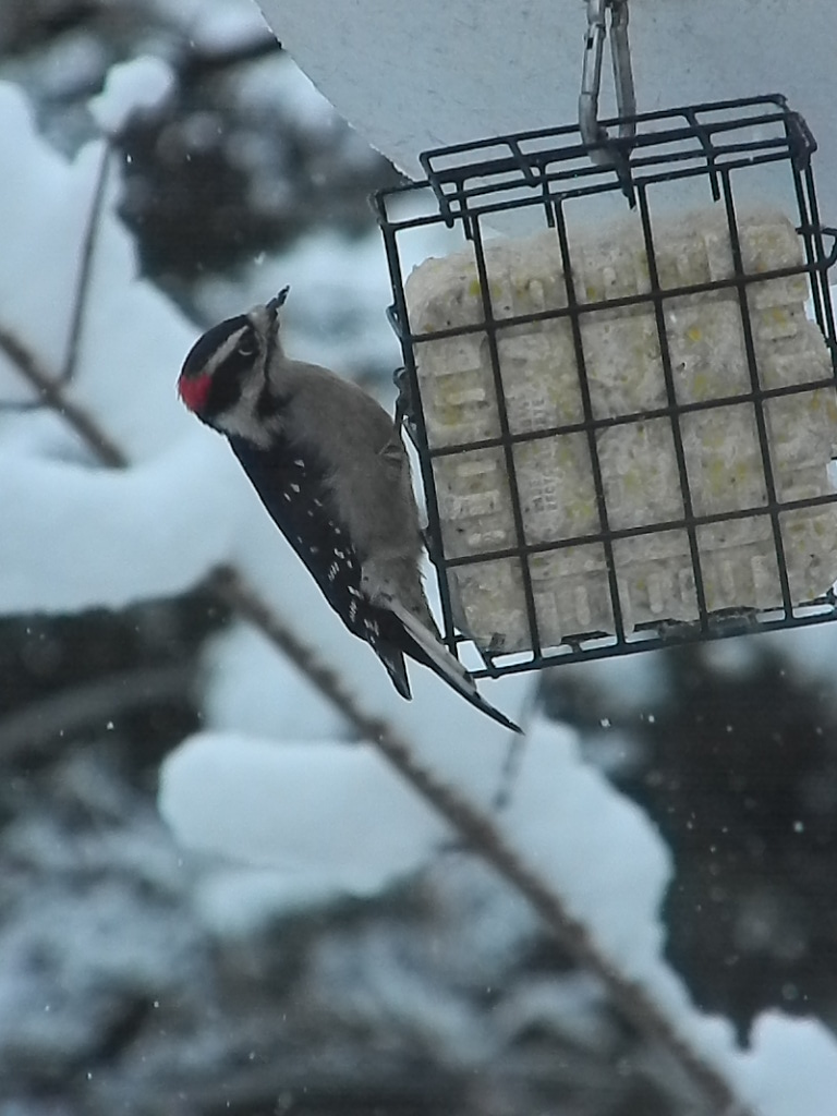The Downy Woodpecker was happy to find suet available when the world was buried in a foot of snow.