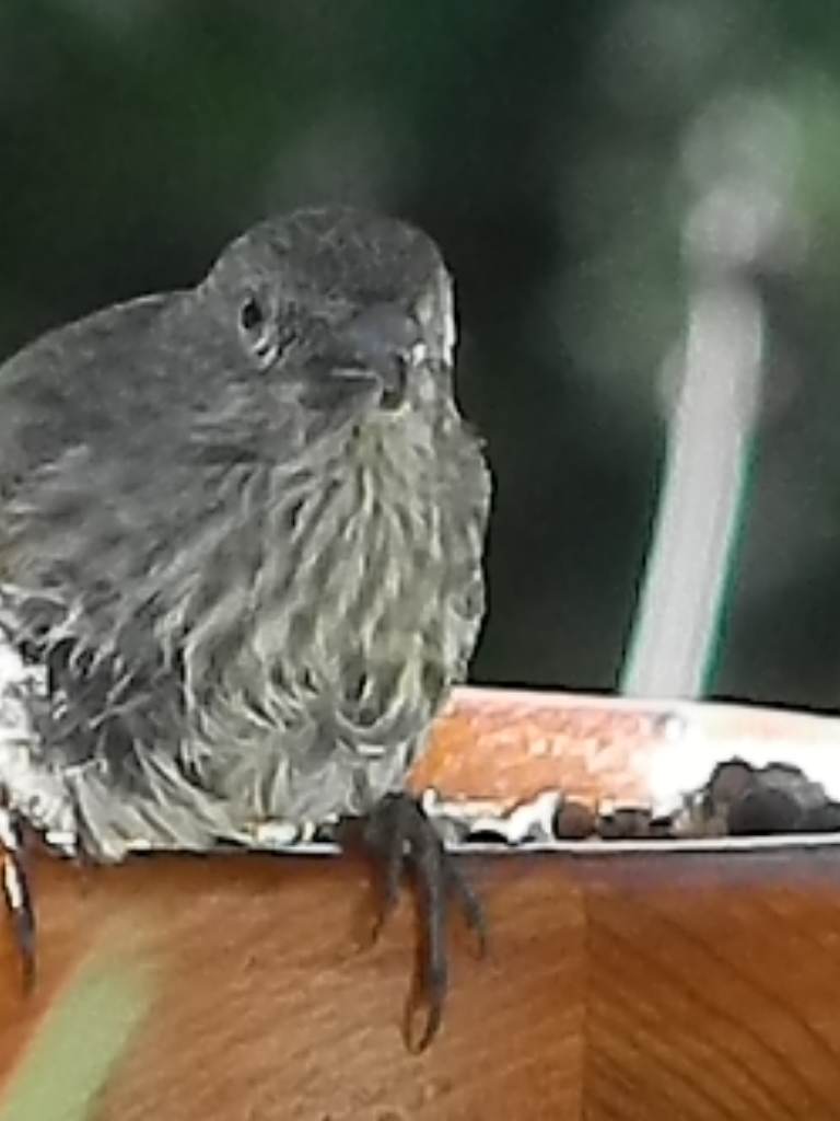 Our resident (wet) sparrow likes the new tray feeder. April 18, 2014