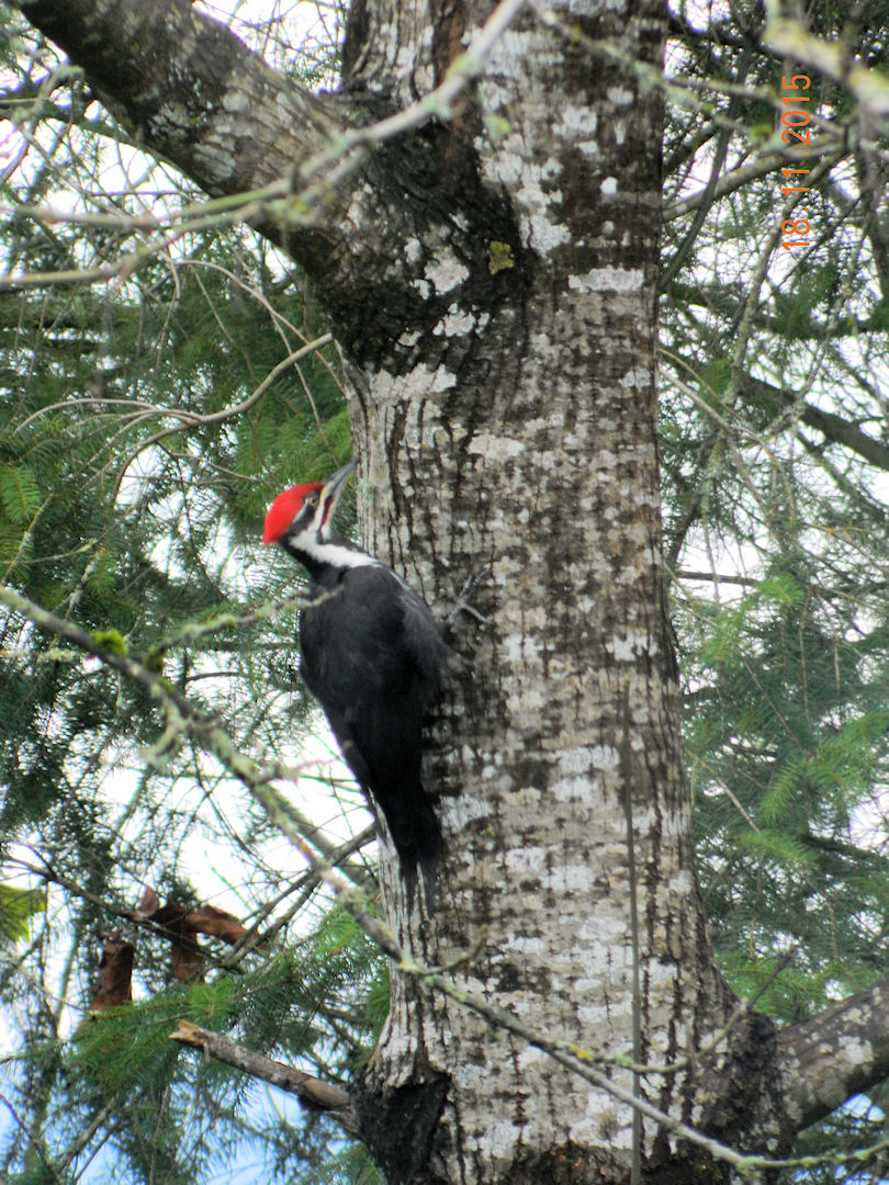 Another look at one of the big Pileated Woodpeckers. They didn't stay long. Nov 18, 2015