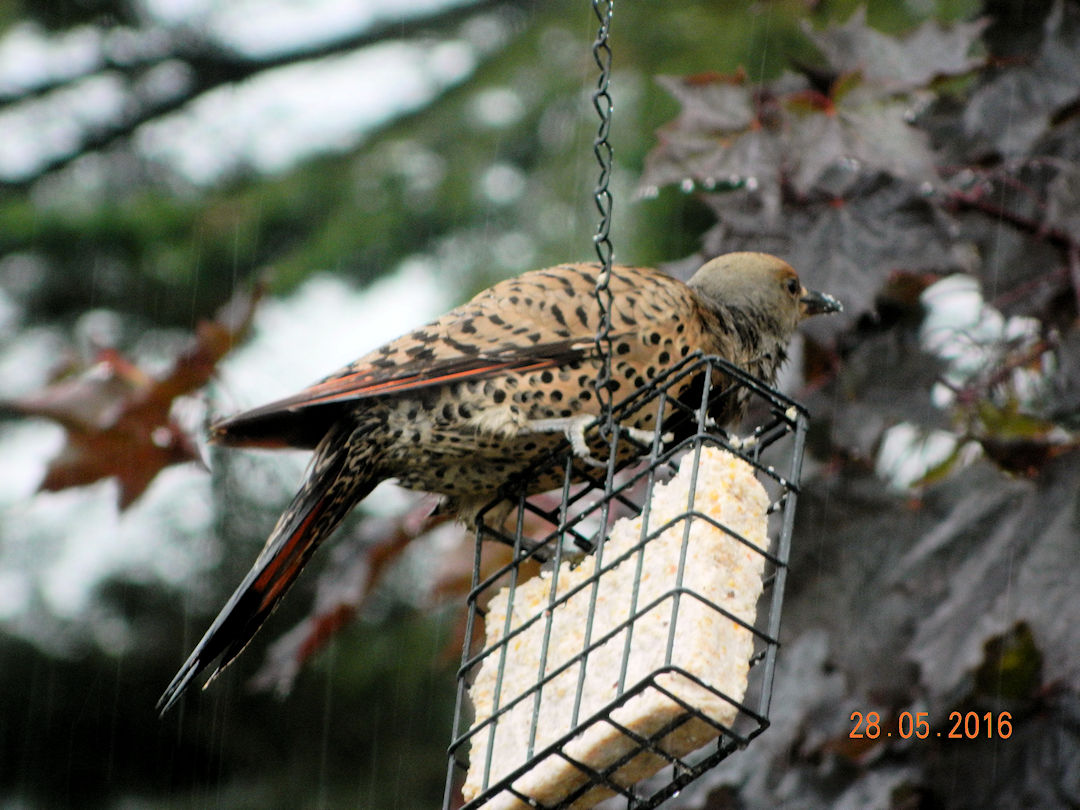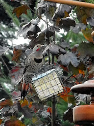 A young flicker has found our suet. He wouldn't cooperate for getting a face-on picture.