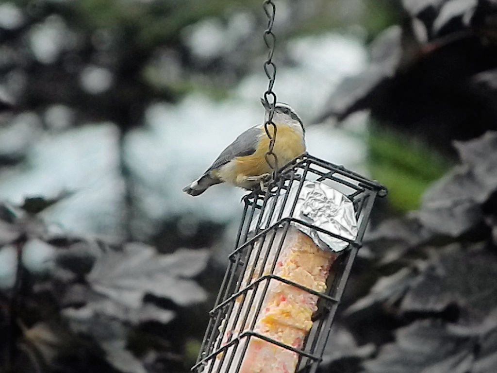 A Red Breasted Nuthatch found our suet feeder. It is mostly populated by chickadees who don't sit still long enough to have their picture taken.