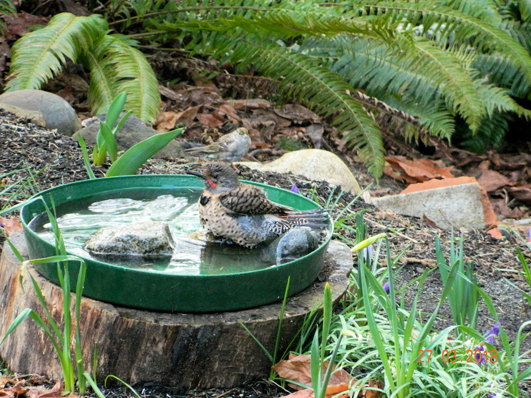 We caught our resident flickers having a bath this morning. They took turns having a good splash in the water.