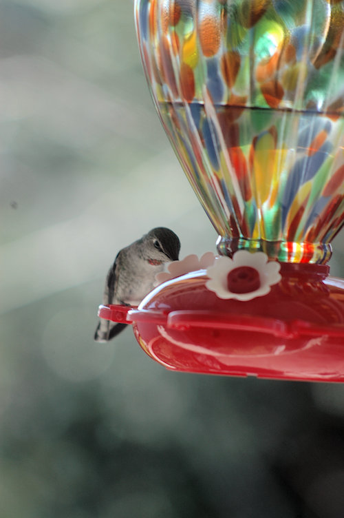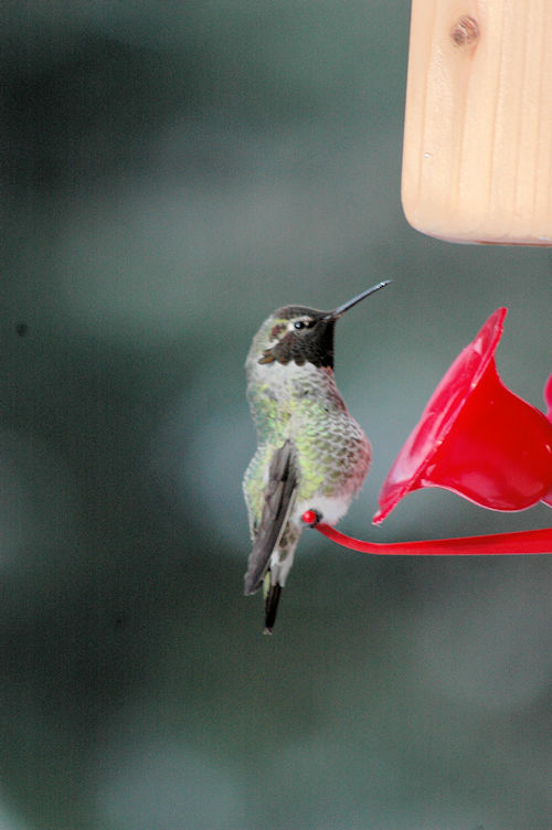 A new humming bird feeder, a birthday present from Steve, Heather and Alex, went in to service replacing the Nyjer feeder just out side the patio door. It has turned out to be a favorite of both the humans and the hummers. Mr. Red Chin (and friend) has been a regular time sharing (as only humming birds can) with the pair of resident Anna's.