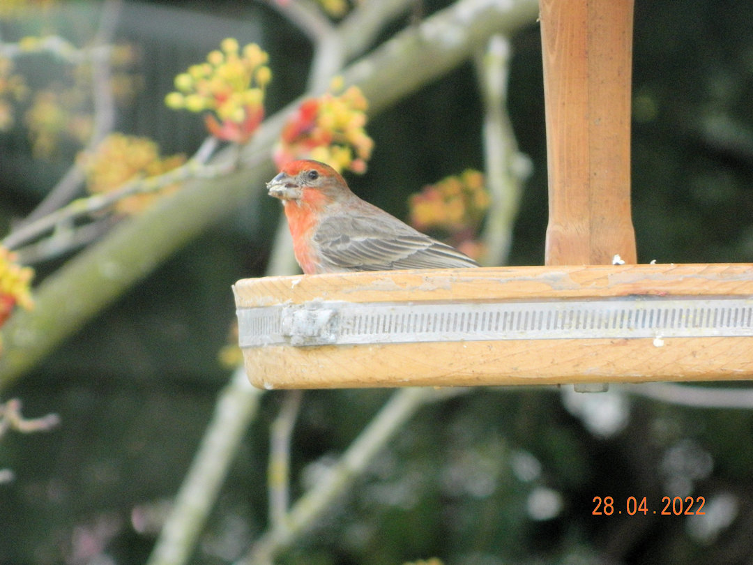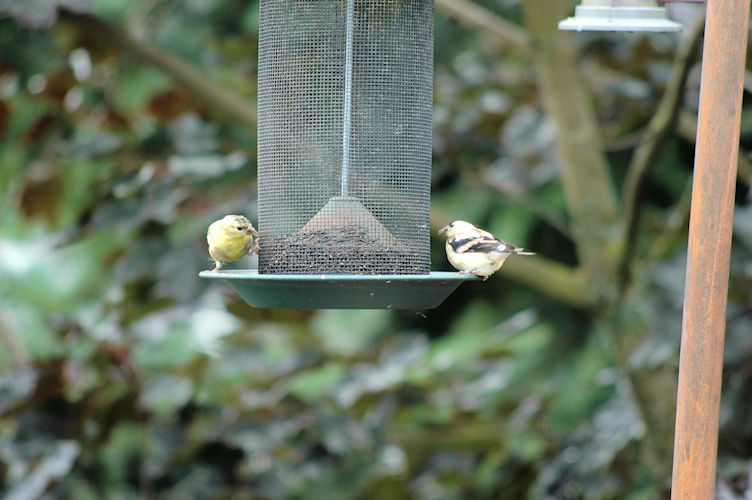 This pair have been around for a few days, but this is the first time they and the camera have been together. Maybe with a little practice we will get a good picture. I think they are Golden Finches.
