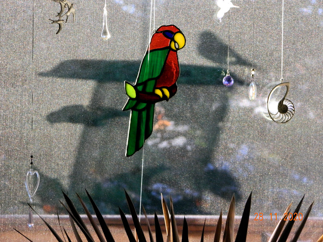 Ok so this is not a picture of our static bird but rather about the shadow in the back ground. We have a Nyjer feeder that is set up once colder weather sets in. The Pine Siskins like the fine seed. This year it was hung in a new location closer to the house, and this morning, after two days of high wind, the siskins found it. At about 8:30am the sun cast it's shadow on the new screen on the new sliding door. This really should have been a movie so you could see the goings on.