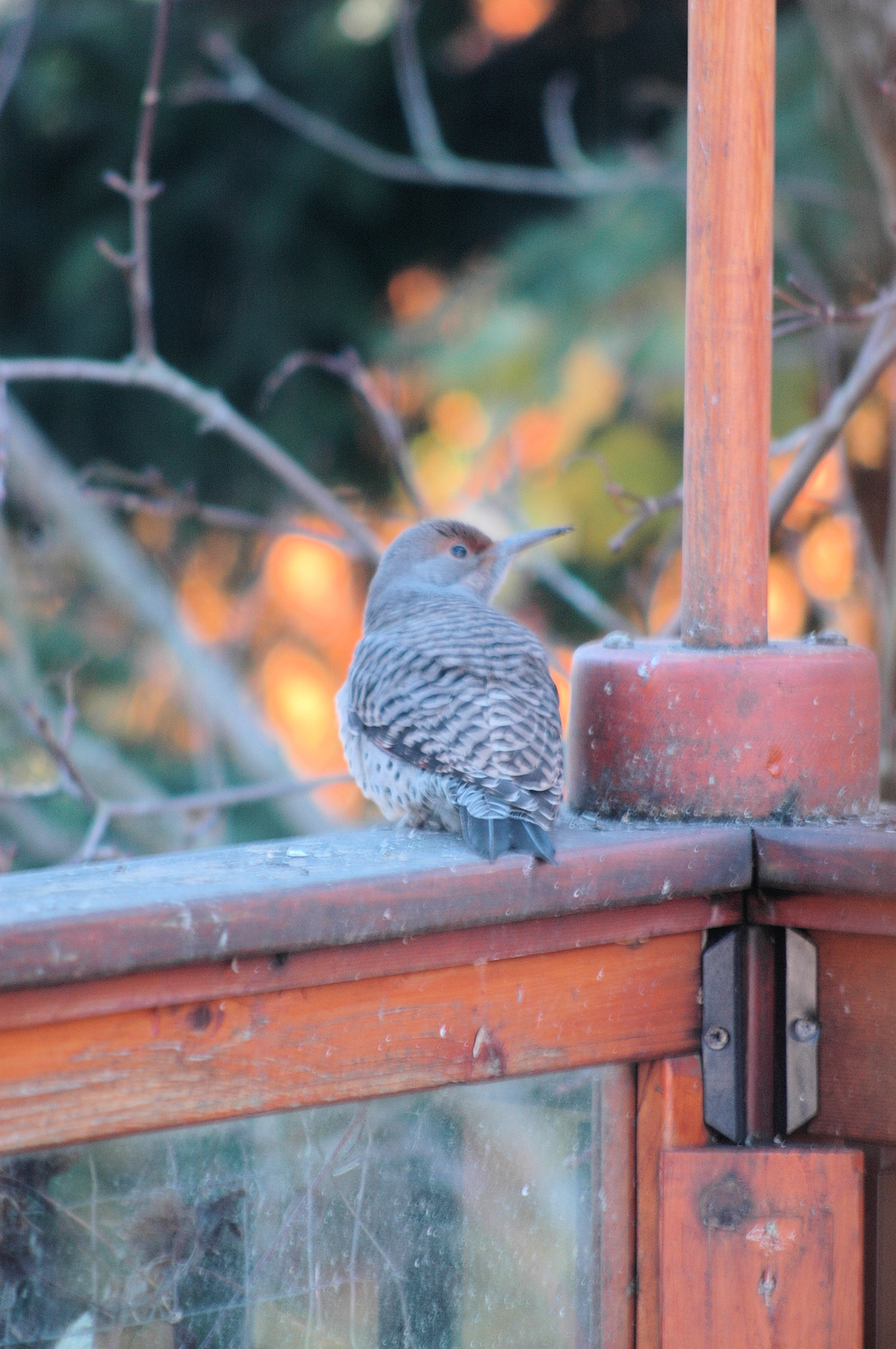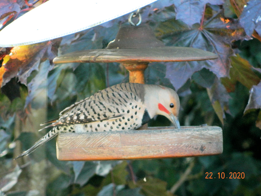 A Red Shafted Flicker came to visit. We usually see them on the suet block, but this one stayed in the seed feeder for several minutes.