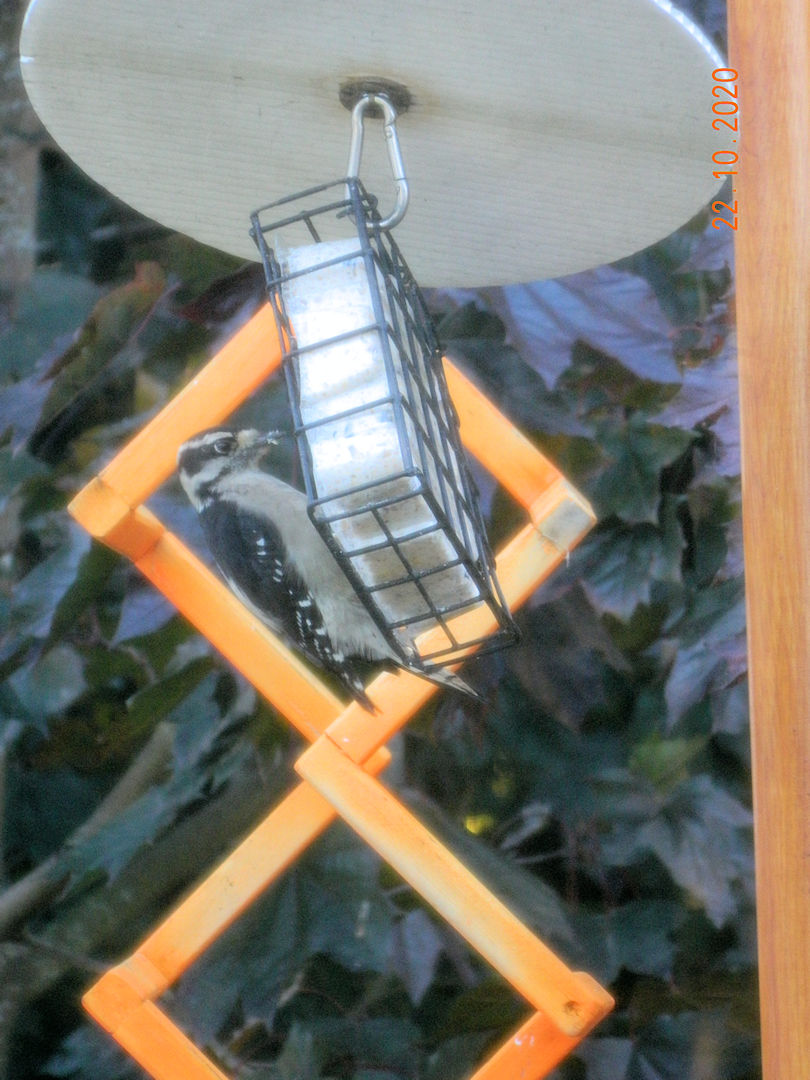 Shortly after the flicker (below) we also had a Downy Woodpecker stop by.