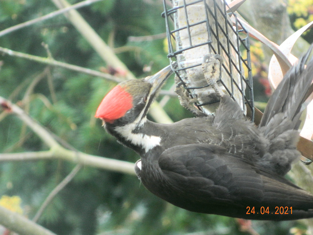 Young lady came for a short visit, but was unhappy the suet feeder was empty.