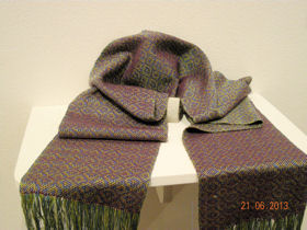 This lovely scarf by Marjy Fiddler of Shoreline, WA won the GCW award for Technical Excellence and an Honorable Mention for Best Craftsmanship. |