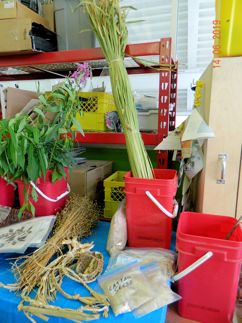 Fresh and dried fireweed, flax and some other plants for fibre.