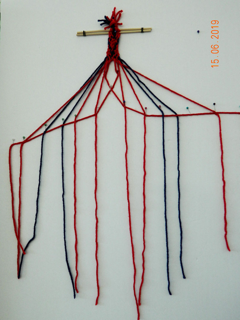This was a demonstration of how to weave starting from the centre using two colours to make the arrows.