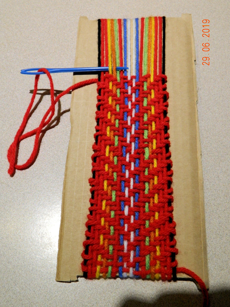 Post Script - after coming home I eventually did a needle woven sample to represent a loom woven sash.