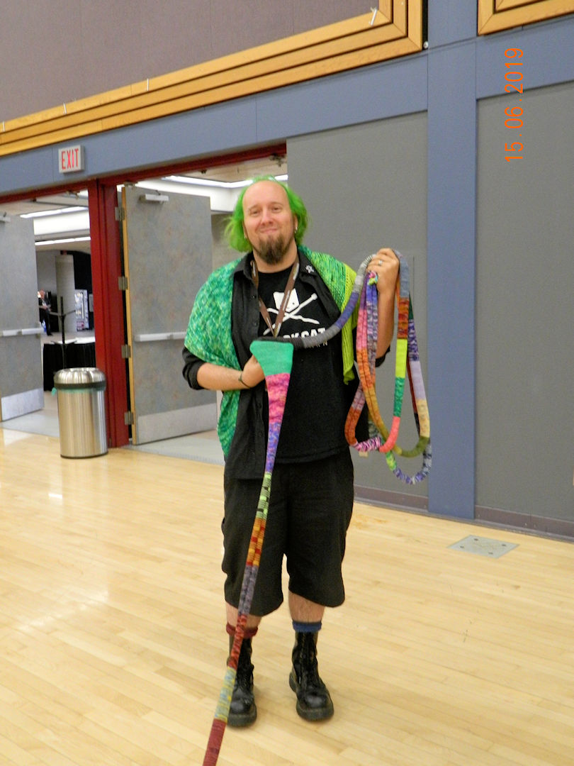 The owner of Black Cat Custom Yarns had a knitted sample of every yarn that they carry - it extended more than the length of the building!