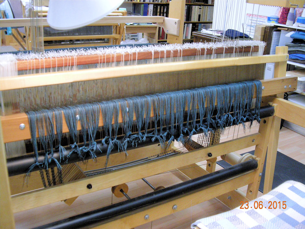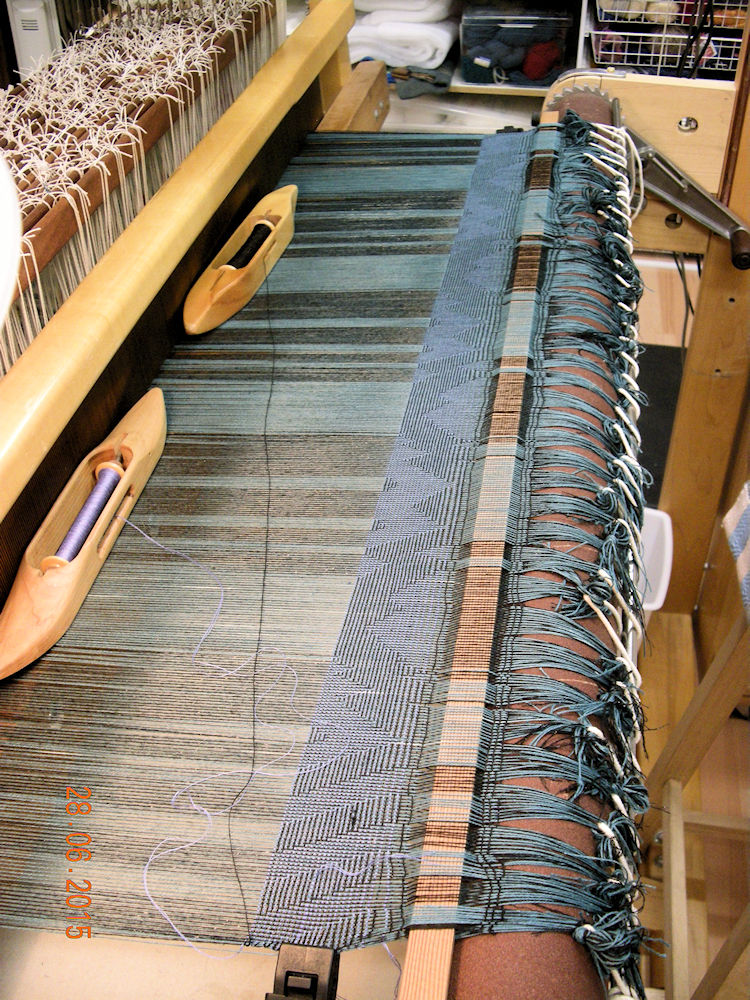 | No more room to advance the warp! Almost four yards have been woven. After all the months of planning, the weaving took just a week. (03:07:2015) |  | |||