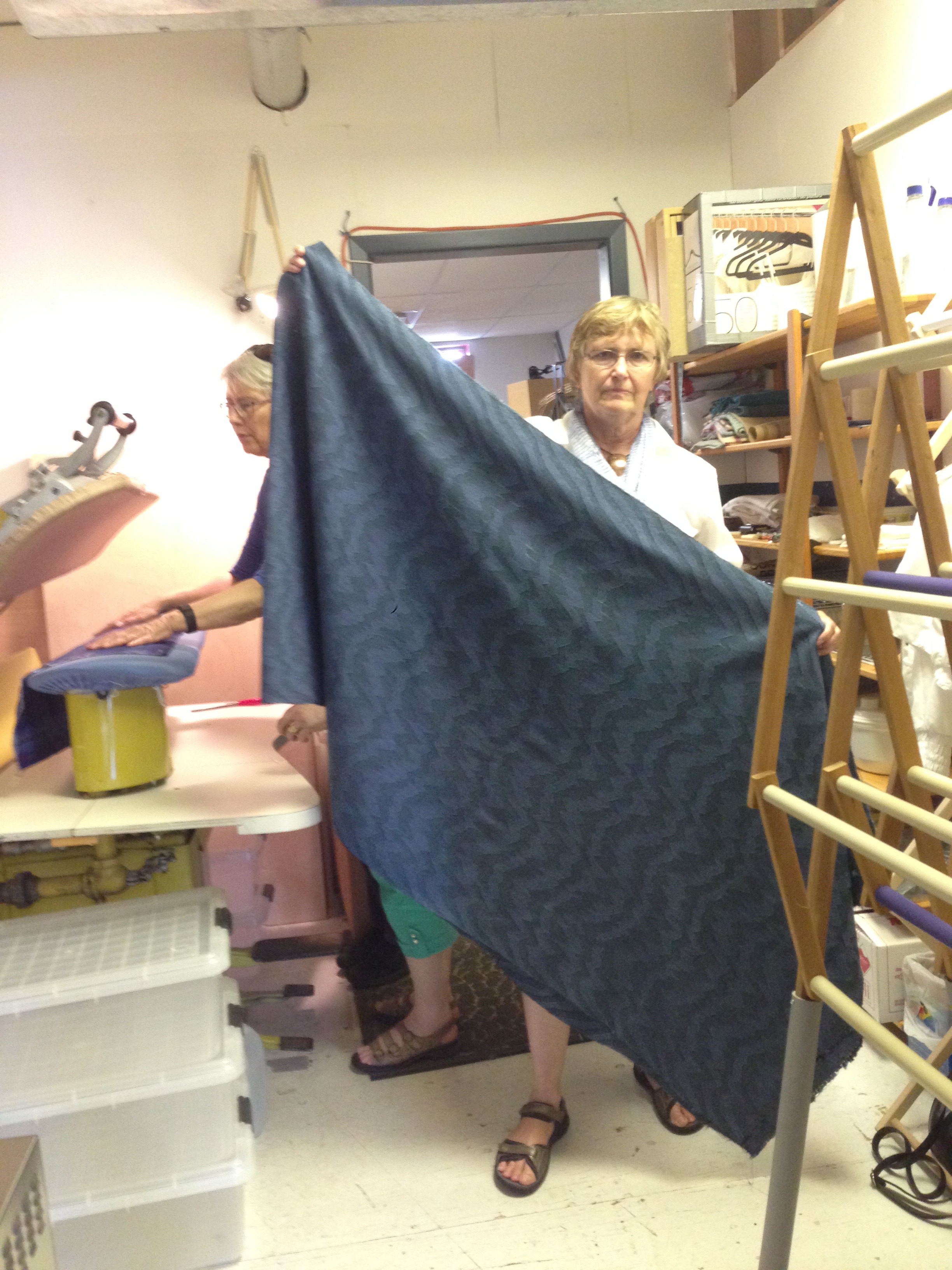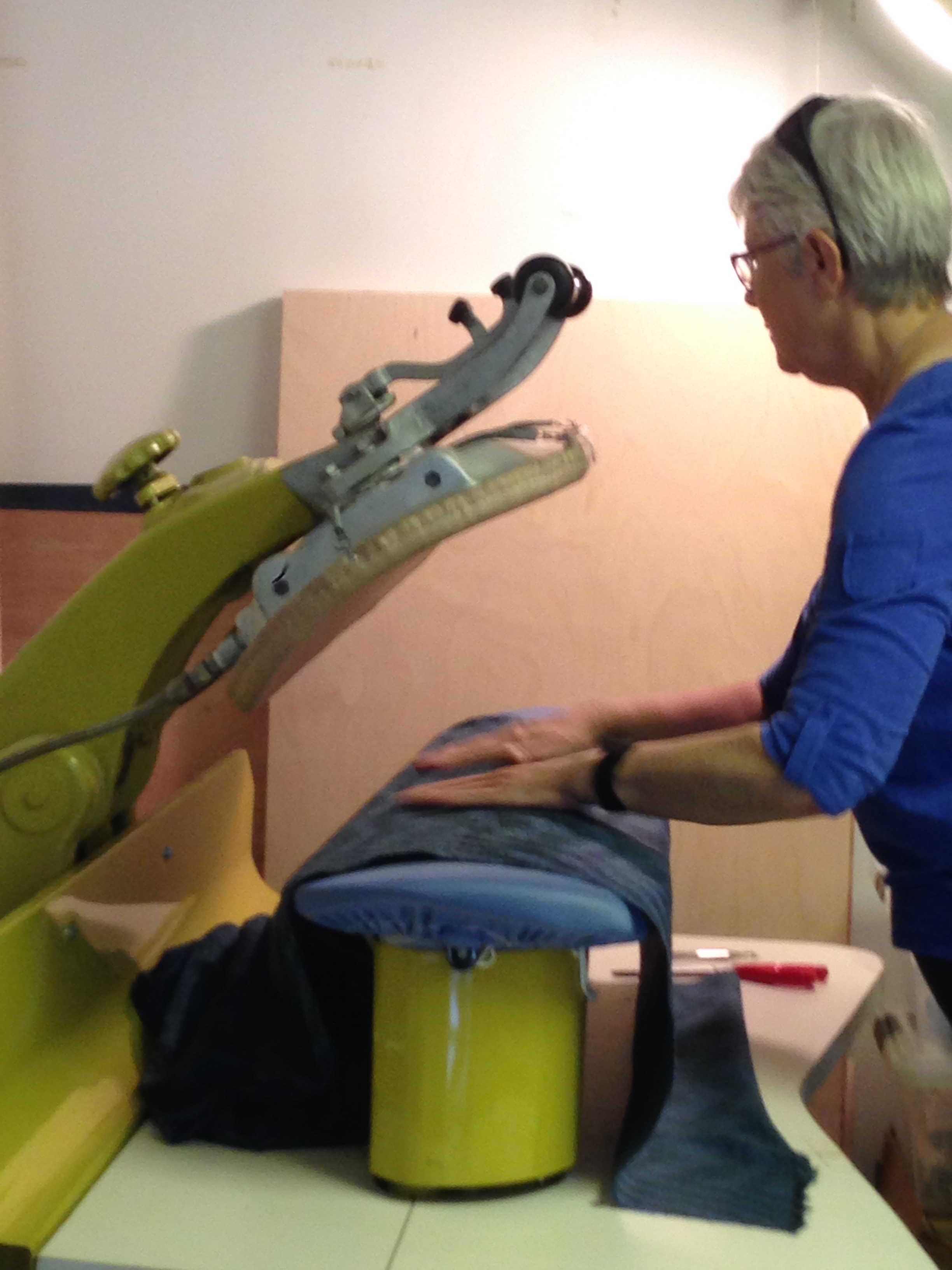 |  | The completed yardage traveled with us to Saskatchewan and then on to Prince George where Laura Fry put it through the wet finishing process and pressed it on "Puff." (20:07:2015) | |||