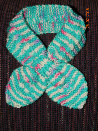 | And a baby sized scarf to go with the booties, to keep out those cool breezes that get under her chin (25:02:2015) |  | |||