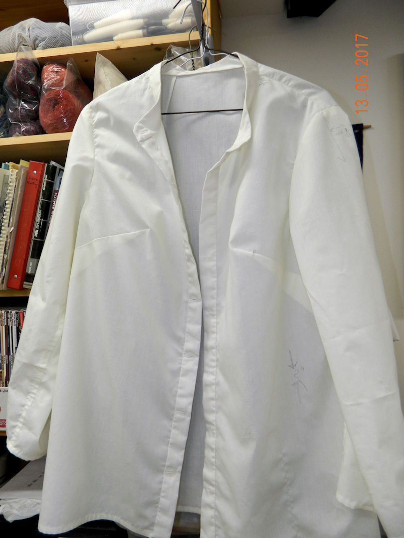 More time passed. And I kept looking at my rather busy fabric and all those buttons, the separate button band and the rolled sleeves.
