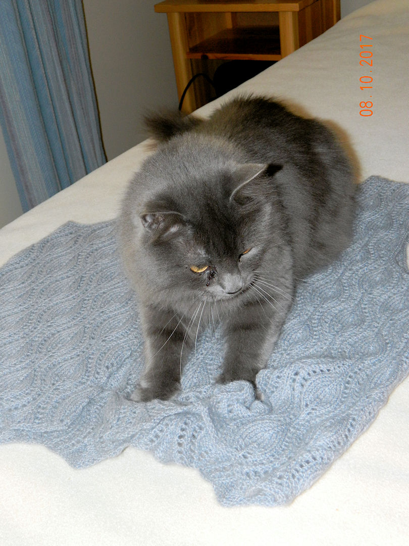 Unpinned and laid out ready for a picture. Shadow says "Oh Mom did you make this just for me? It's soooo soft!"