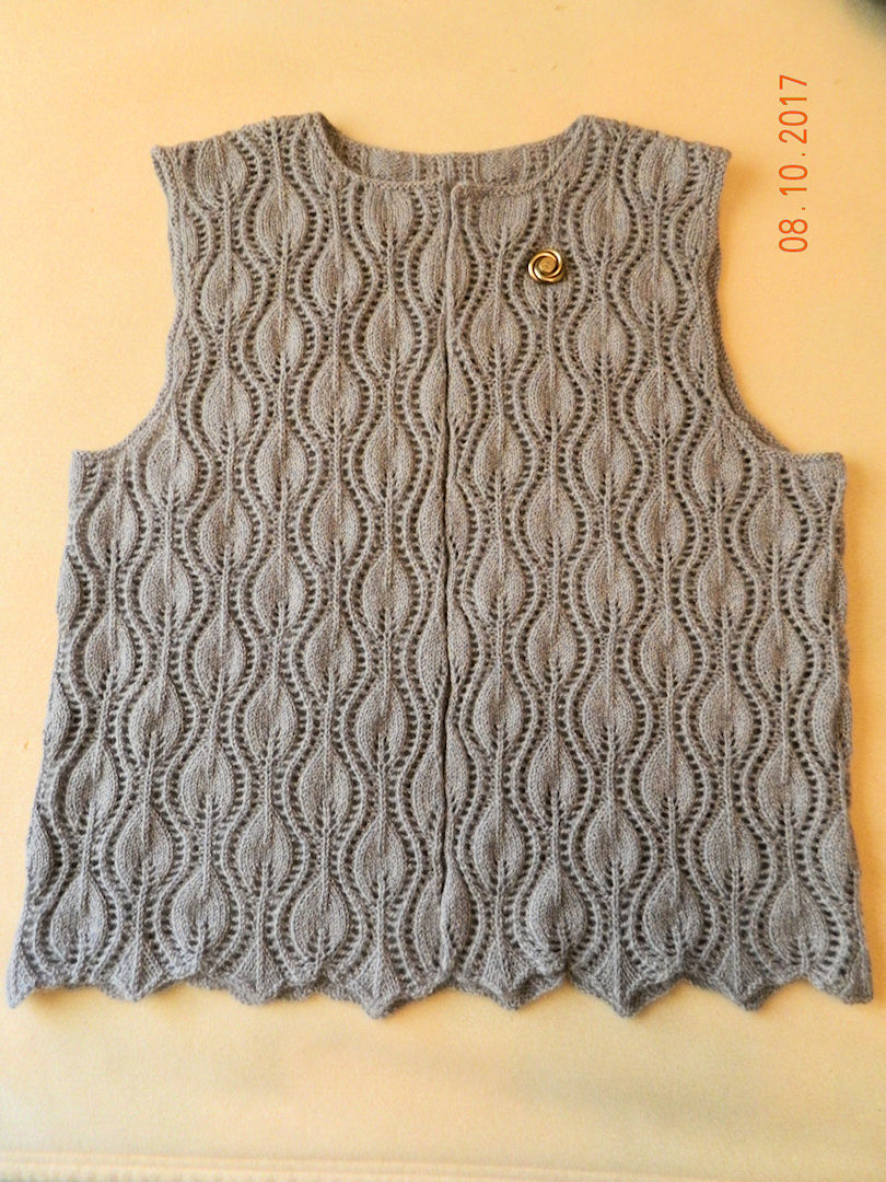 In the fall of 2016 I saw a vest in a yarn store in Powell River. It was lovely, but I thought I had yarn for it at home so just bought the pattern. Then I changed my mind and bought more yarn from a store in Nanaimo.