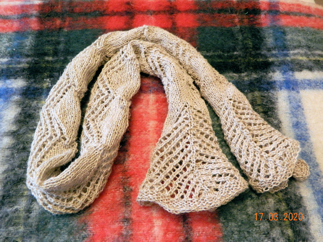 This one was knitted with three strands of the fine linen wound together, so I could use larger needles and it went a lot faster.