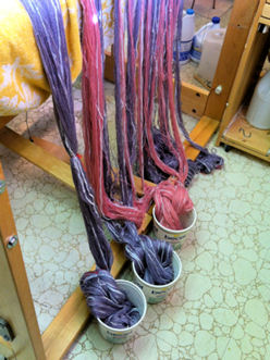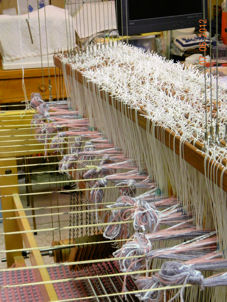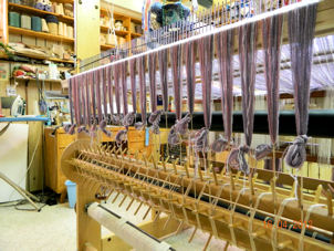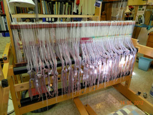 At long last,the whole warp is threaded. At this point the front beam has been removed from the loom. (14:05:2012) |