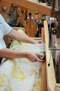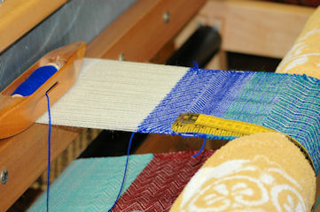 Real weaving has been done! A couple of adjustments to the dobby and to the cloth storage roller and way we go. | ||||||