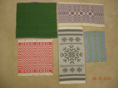 |  | This project is a hold over from 2014 that wasn't finished until 2015.  These are items received in an exchange with members of the Guild of Canadian Weavers. Click here for more pictures. | |||