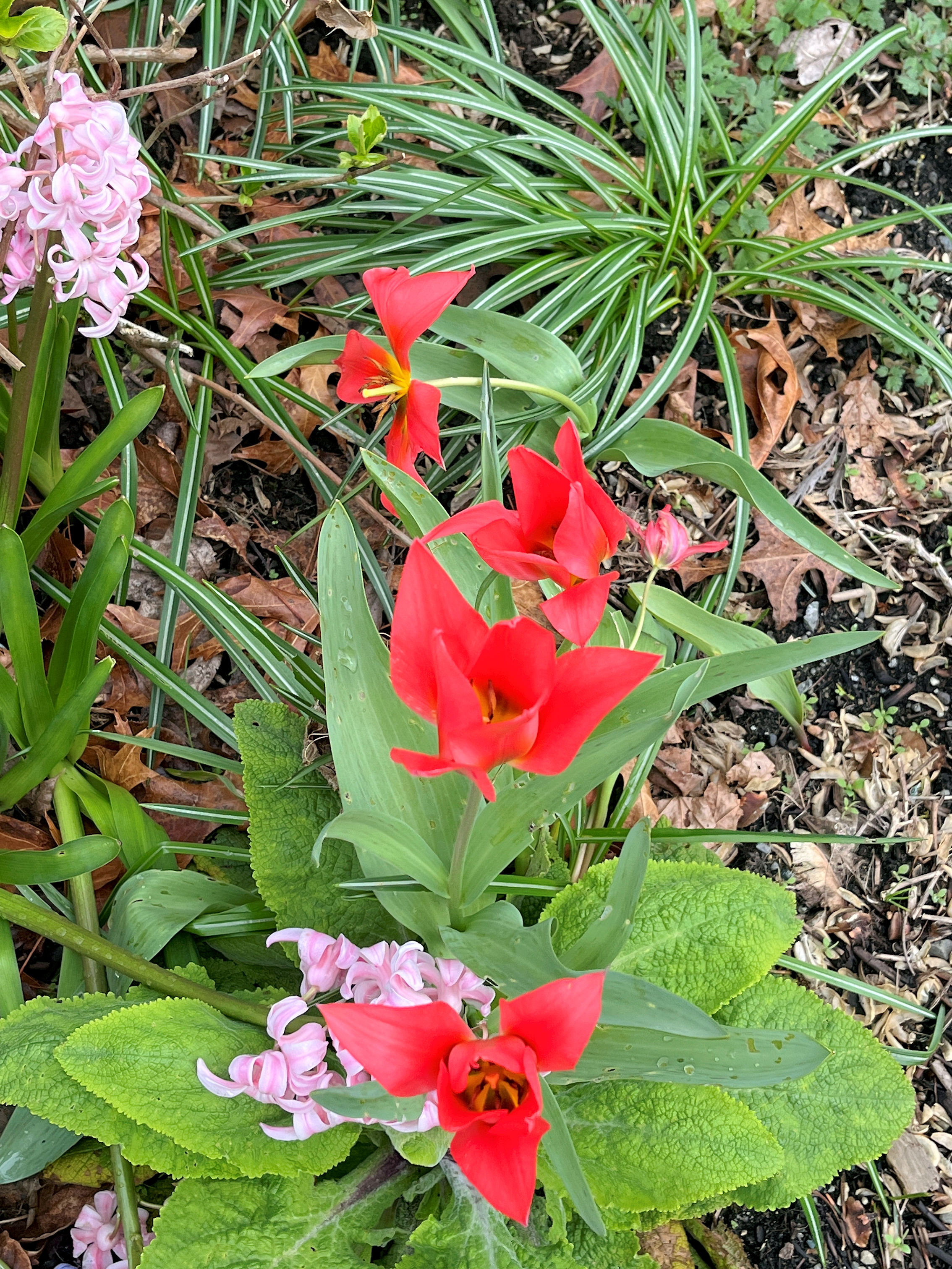 The sun came out and the red/orange tulips opened up again. Looks like they will soon be losing petals. (09:04:2025) |