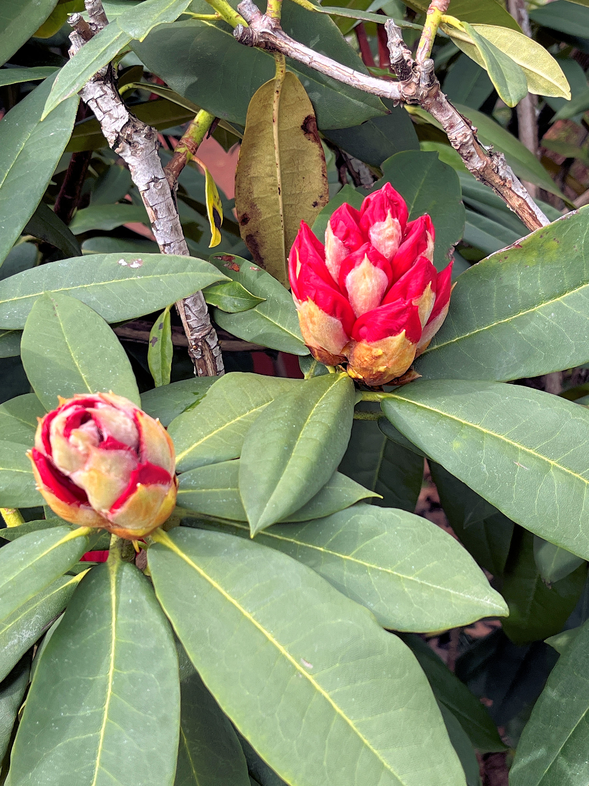 The rhododendron at the front of the house has some large buds. (09:04:2025) |