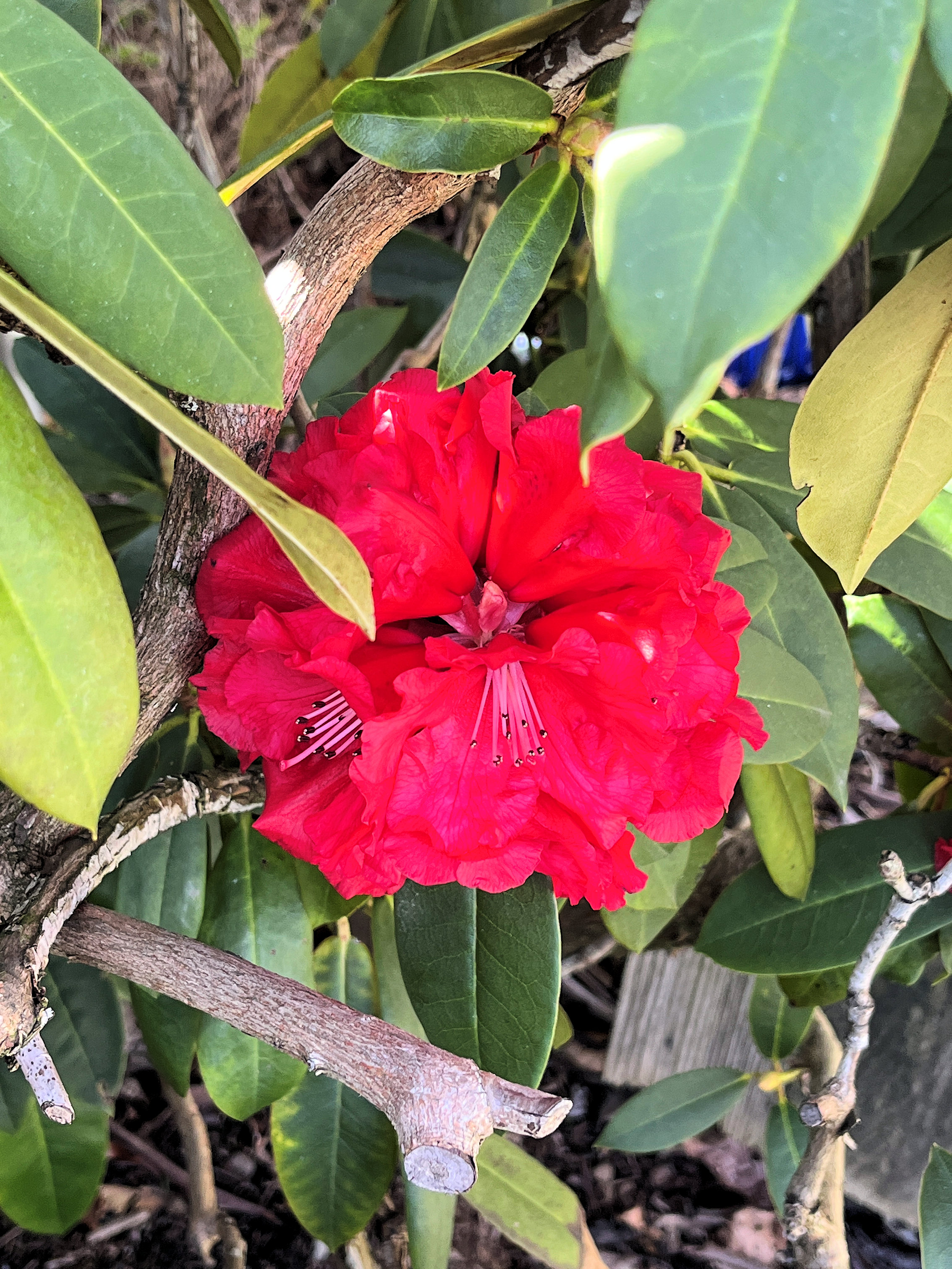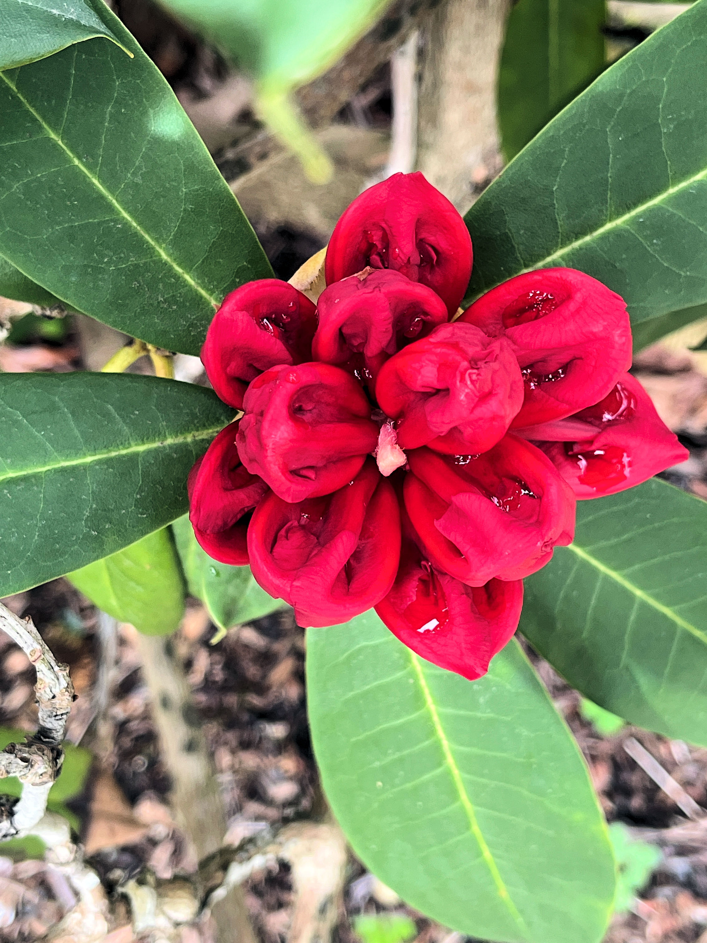 Remember the rhodo buds above? Wait three days and now it's a six-inch blossom! (12:04:2025) |