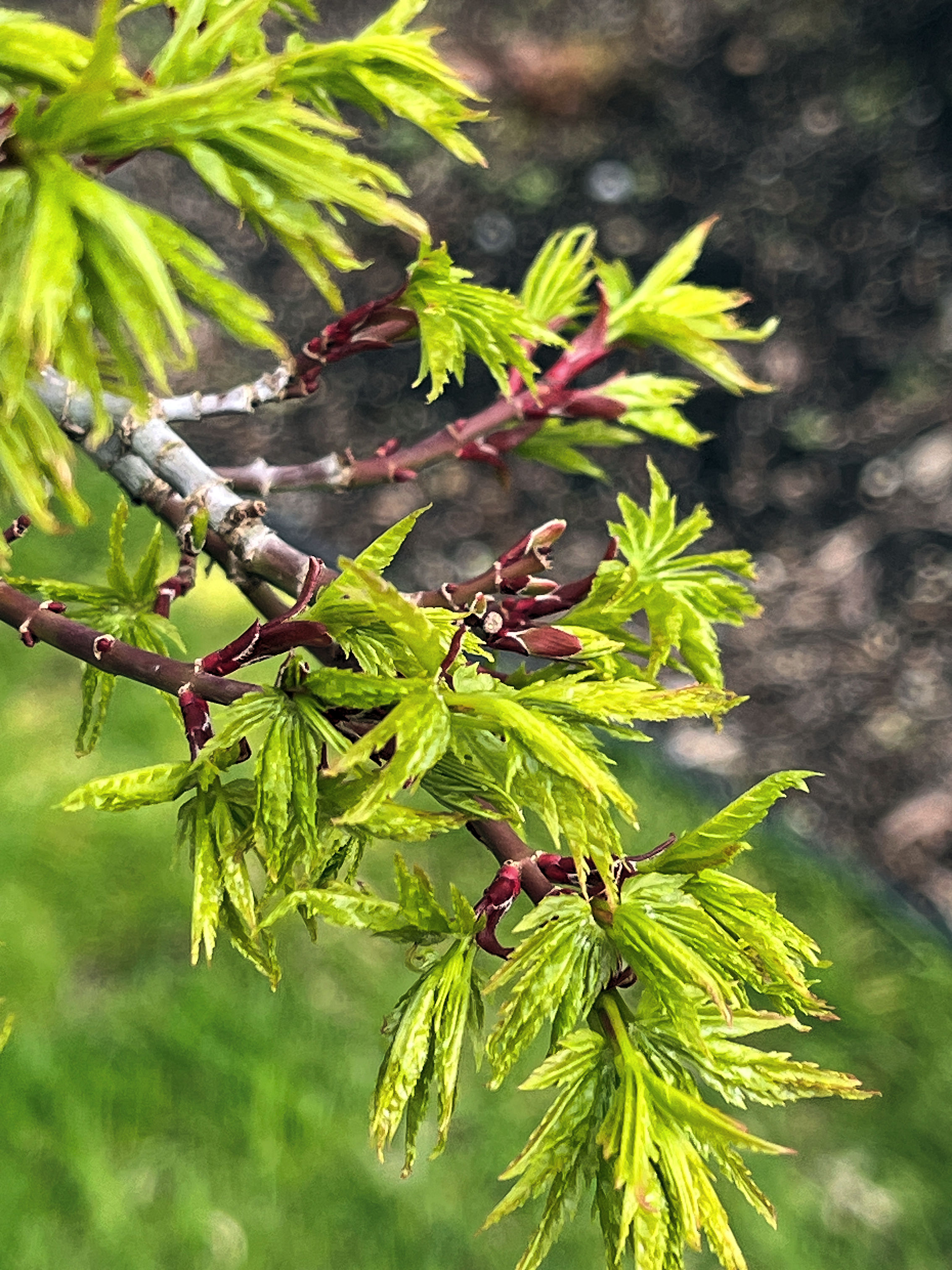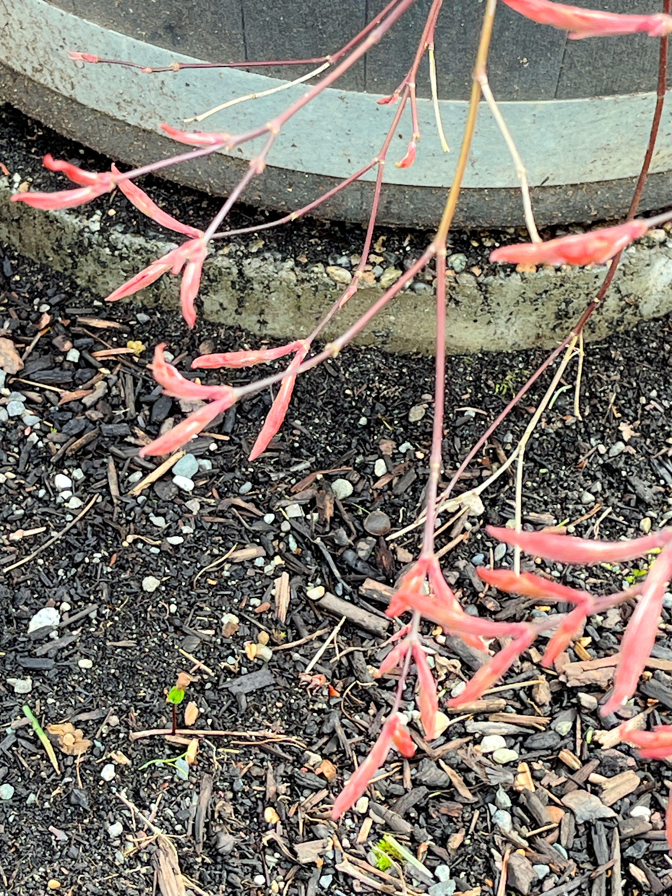 The miniature Japanese maple is leafing out. (09:04:2025) |