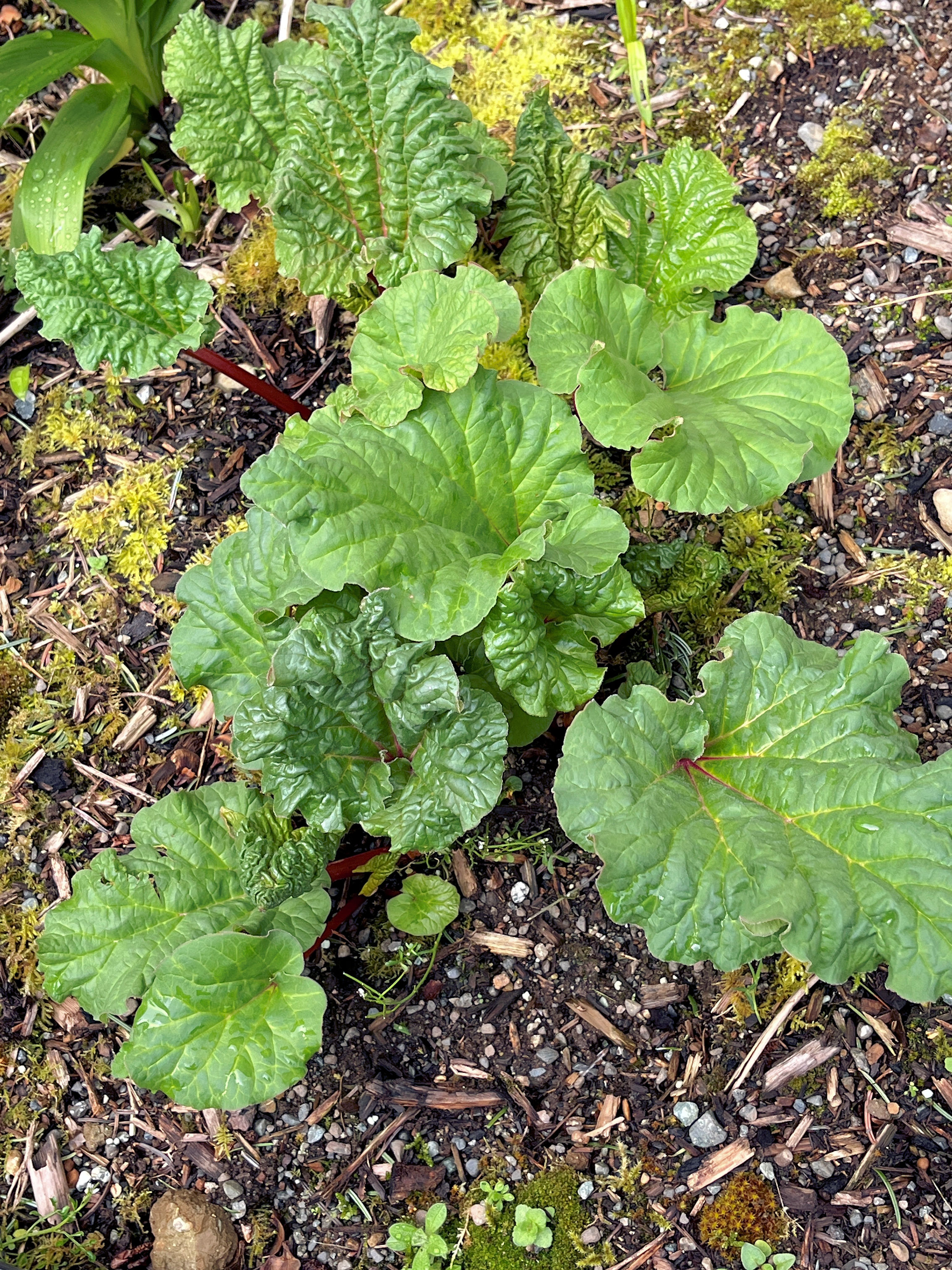 On the sunny side of the house, the rhubarb has come up. (09:04:2025) |